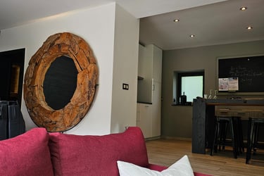 Le salon du Fermage allie confort et caractère. Un fauteuil tantra, discret mais assumé, invite les curieux — ou les connaisseurs — à une expérience plus audacieuse. La décoration, minutieusement choisie, crée une atmosphère à la fois élégante et chaleureuse. La cuisine, entièrement équipée, dispose de tout le nécessaire pour savourer vos repas, qu’ils soient préparés sur place ou commandés. Son feu réchauffe les cœurs pendant les soirées en hiver comme en été.